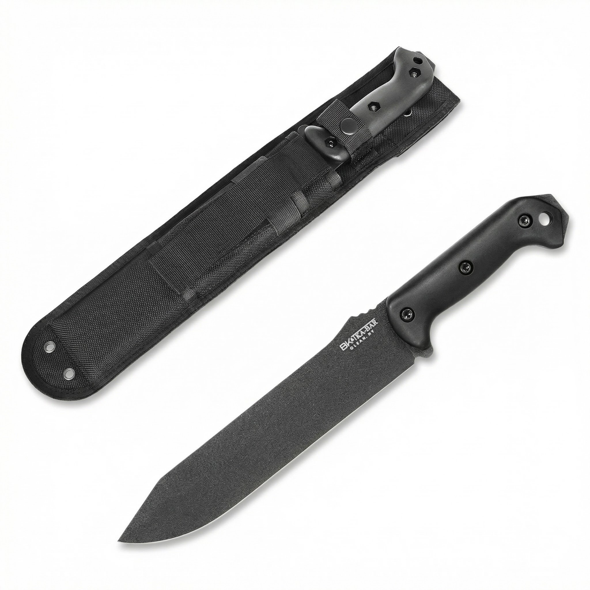 Herzstück dieses Giganten ist die Full-Tang-Konstruktion aus scharfem 1095 Cro-Van Kohlenstoffstahl. Dieser Stahl ist berühmt für seine Zähigkeit und lässt sich auch im Feld problemlos nachschärfen. Damit das Messer auch widrigsten Bedingungen trotzt, ist die Klinge mit einer robusten schwarzen Beschichtung versehen, die effektiv vor Korrosion und Kratzern schützt. Dass dieses Messer für extreme Belastungen gebaut wurde, unterstreicht der 4,8 mm starke Klingenrücken, der dem BK9 eine enorme Stabilität beim Hacken und Hebeln verleiht.